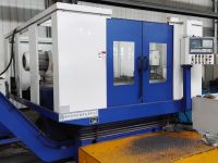 火車鉤尾框承載面加工專機(jī),本機(jī)床為臥式單面布置,前面數(shù)控移動(dòng)工作臺上安裝有回轉(zhuǎn)夾具,后面數(shù)控移動(dòng)工作臺上配有專用雙軸銑削動(dòng)力頭。夾具具有自動(dòng)回轉(zhuǎn)及回轉(zhuǎn)到位后自動(dòng)鎖緊功能,回轉(zhuǎn)角度由固定擋鐵控制,更換品種時(shí)需更換擋鐵塊。本機(jī)床主要用于13B、17型、力拓40T鉤尾框承載面的銑削加工,生產(chǎn)節(jié)拍:4分鐘/件。工件以底面、側(cè)面及尾部定位,液壓油缸夾緊。人工吊裝上下料,一次一件,液壓夾緊,數(shù)控系統(tǒng)控制,并配有獨(dú)立的液壓站、電氣柜、集中潤滑裝置。本機(jī)床加工剛性好,并適合多品種加工。